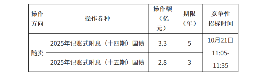 2025年10月24日起与同期国债合并上市交易。中标参与机构不迟于2025年10月22日,将随卖操作款缴入财政部指定资金账户,缴款日期以财政部指定账户收到款项为准。