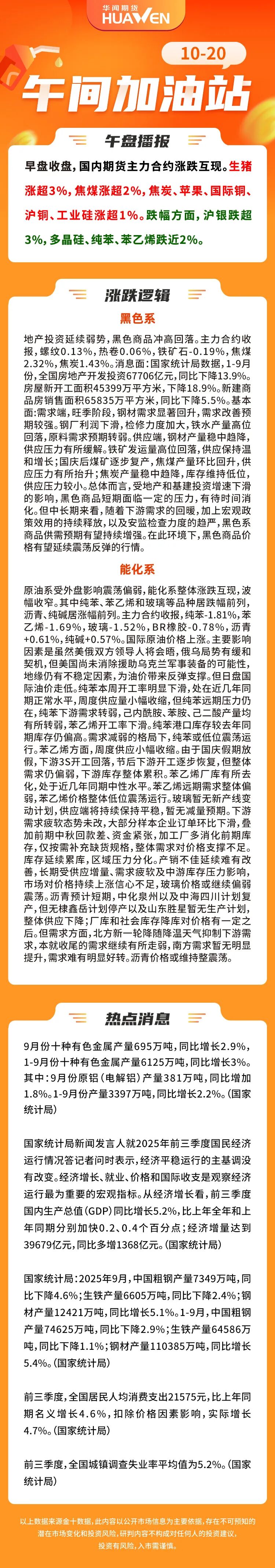地产投资延续弱势,黑色商品冲高回落。