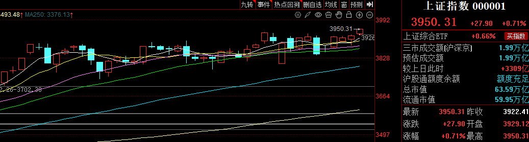 如果不是银行回调,券商板块压盘,今天恐怕要朝4000点前进了。