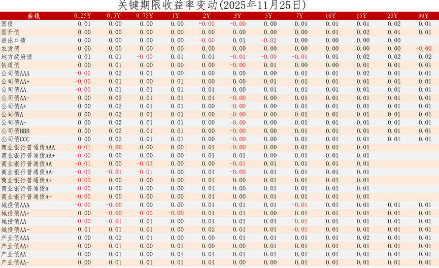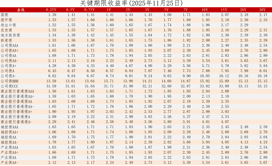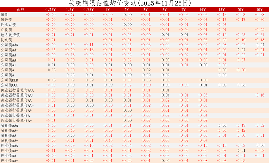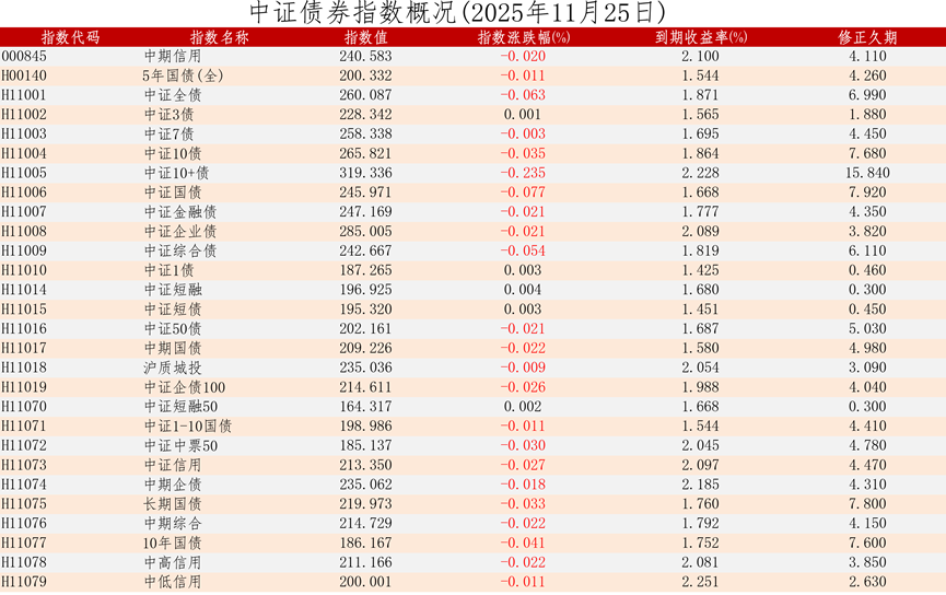 中证债券估值日报2025年11月25日