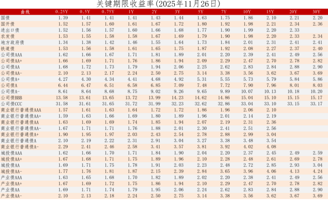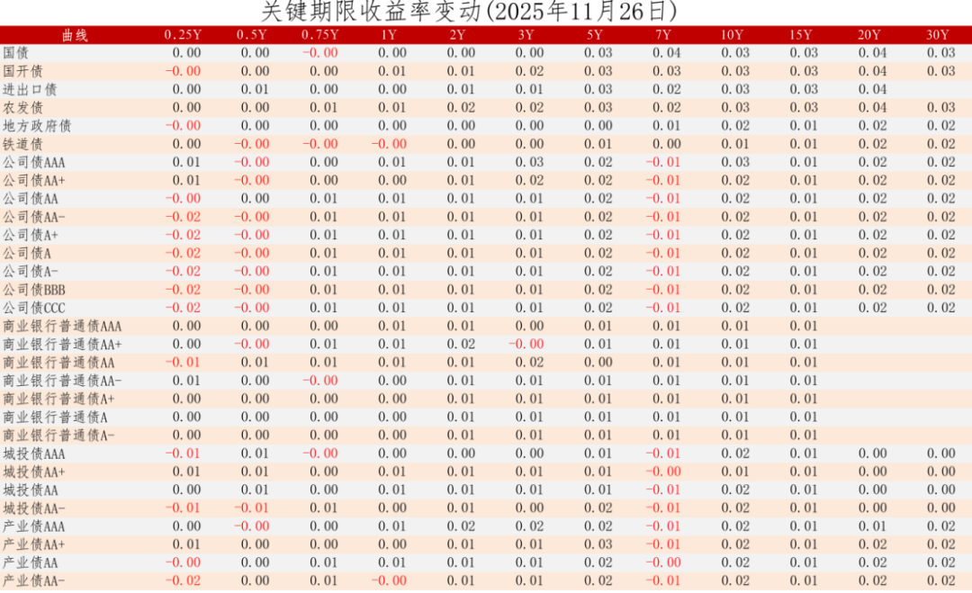 今日信用债市场收益率整体上行。中短票据、企业债和交易所公司债各等级收益率整体波动-1BP到3BP。