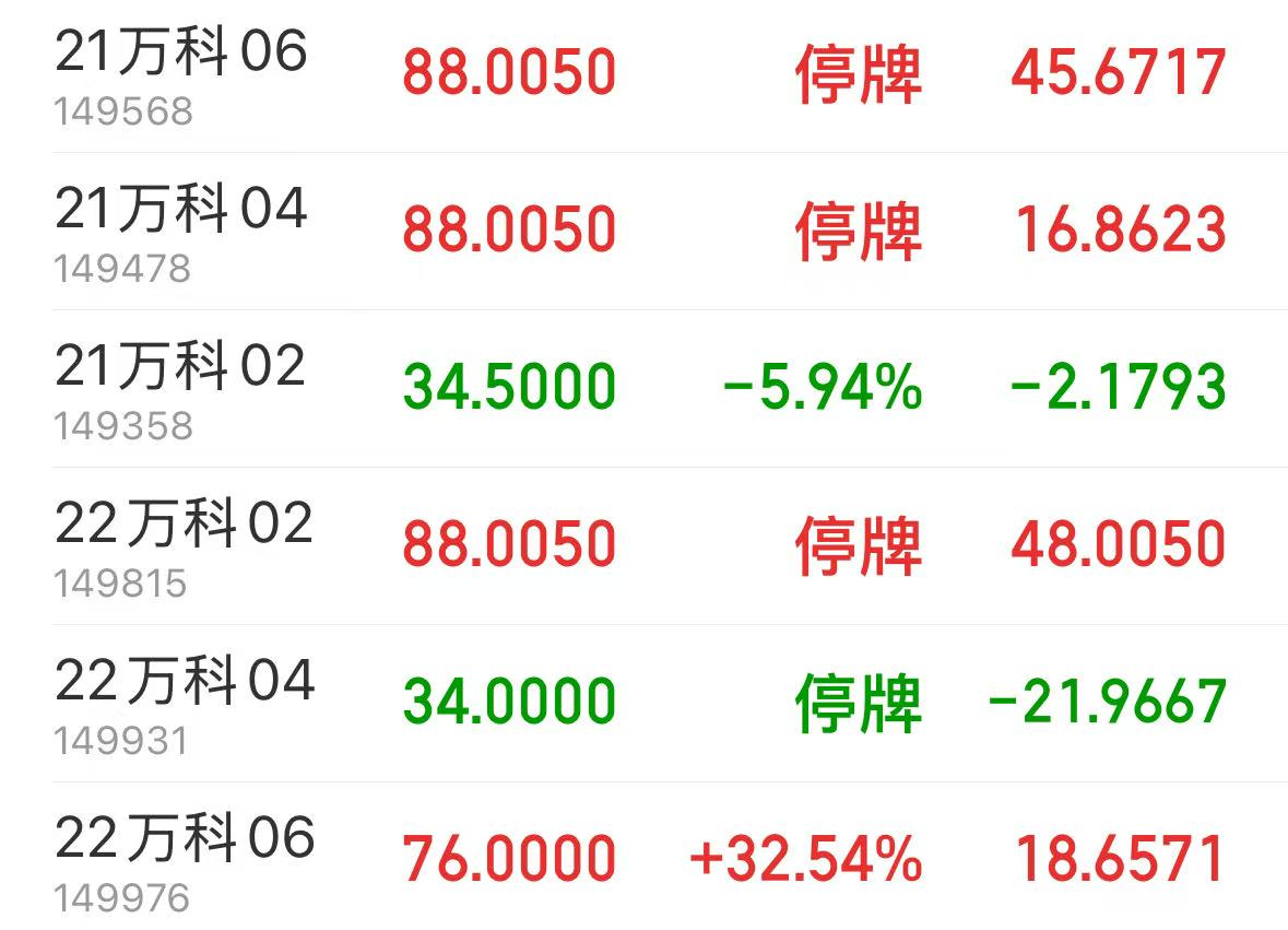 当日稍早,“21万科04”盘中曾跌近44%,“21万科06”跌超38%,“22万科02”跌22.5%,“21万科02”跌近21%,均触发盘中临停。