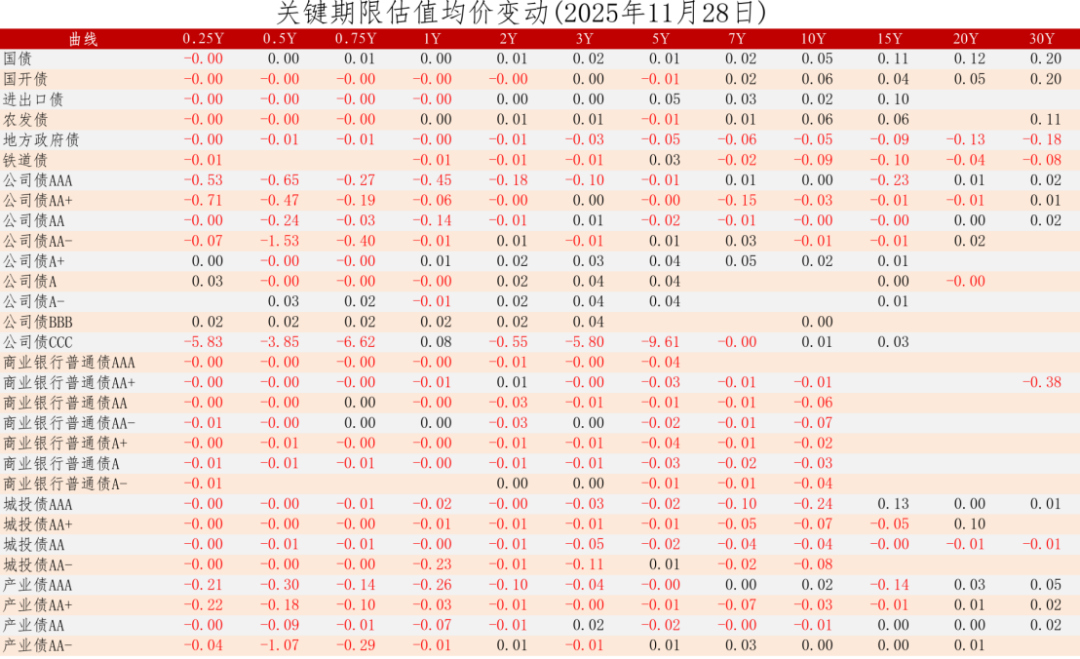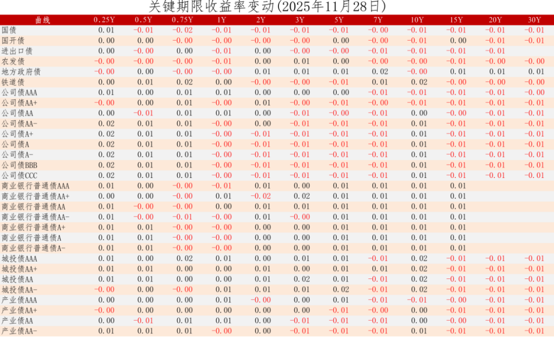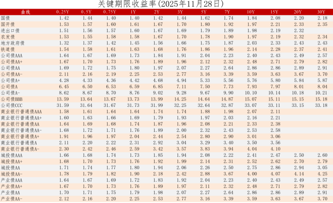 今日信用债市场收益率整体下行。中短票据、企业债和交易所公司债各等级收益率整体波动-1BP到1BP。