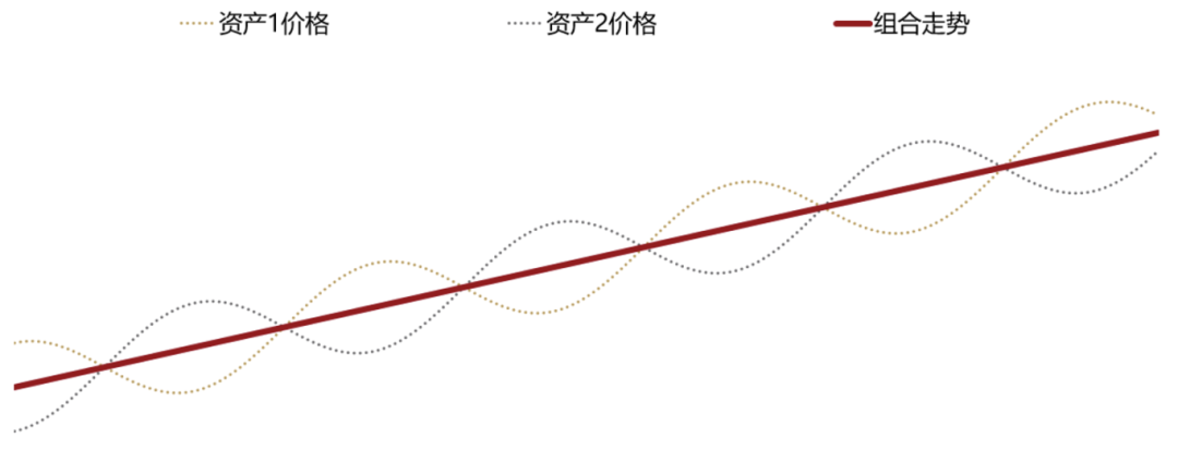 我们先通过一张示意图直观感受资产配置的重要性与意义。资产价格总会波动,无论是国内外资产,拉长到年度维度看,大多呈现震荡上行的特征。假设我们有两类资产,走势不同且呈一定负相关,但长期均震荡上行,若两者收益率相近,单独选择任一资产都可行,但更优解是做资产配置——将资金各50%分配给两类资产。在理想情况下,这两类资产长期收益率均上行,但受宏观因素、基本面、资金结构等影响,各自会出现阶段性回撤,而分散配置后,虽长期收益率与单独持有相近,但资产回撤和波动会大幅降低,能显著改善投资持有体验。