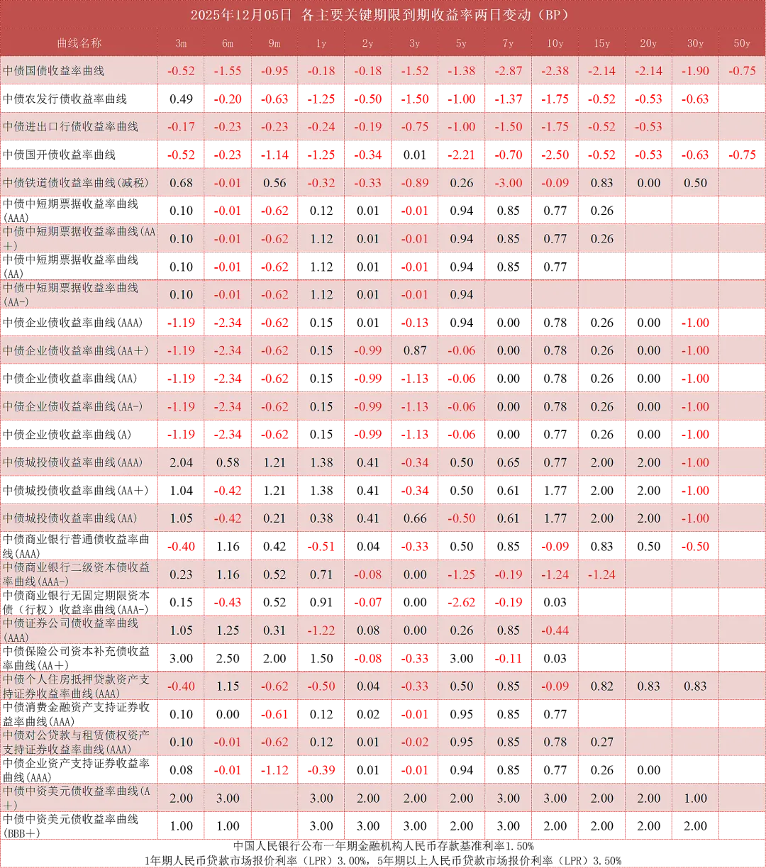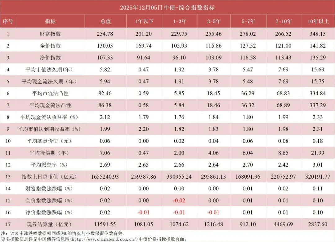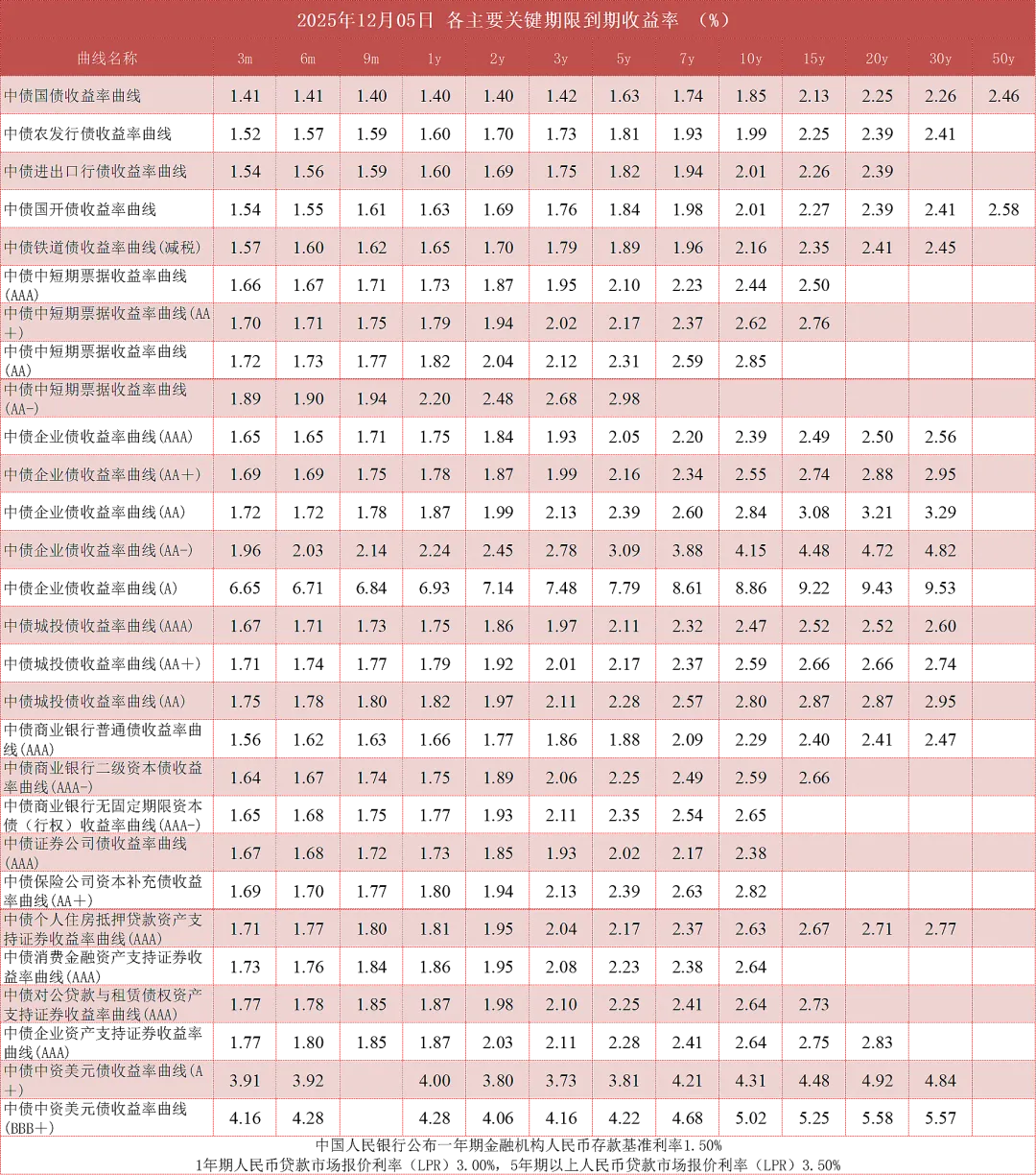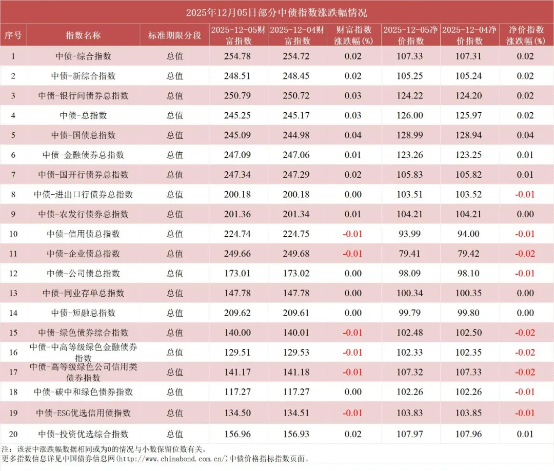 债市值言:中债收益率曲线和指数日评2025年12月5日