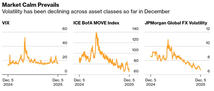 就在几周前,每一次市场的投机性波动都让人们的担忧加剧:加密货币价格暴跌、人工智能相关股票大涨后下跌、股市和信贷市场上的波动短暂加剧。但现在,恐慌情绪很快就消退了。2025年交易的最新主导节奏已经重新确立:在风险资产上进行低波动性、高信心的押注,而美国经济则持续向前发展。