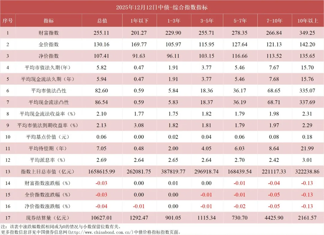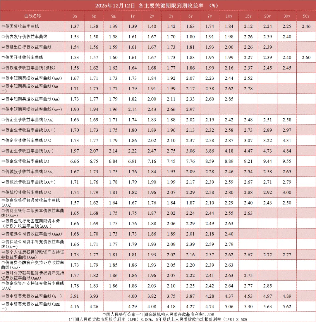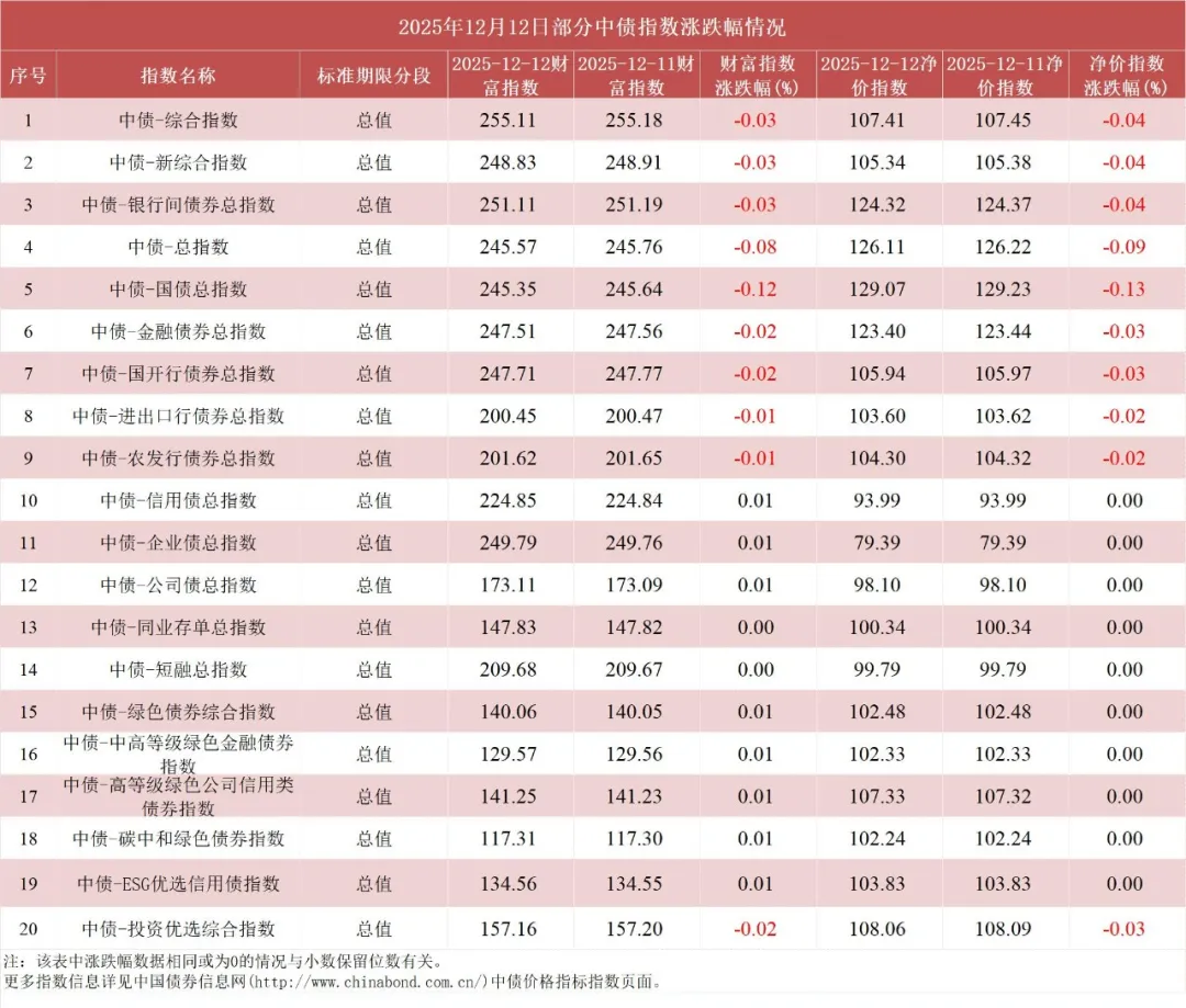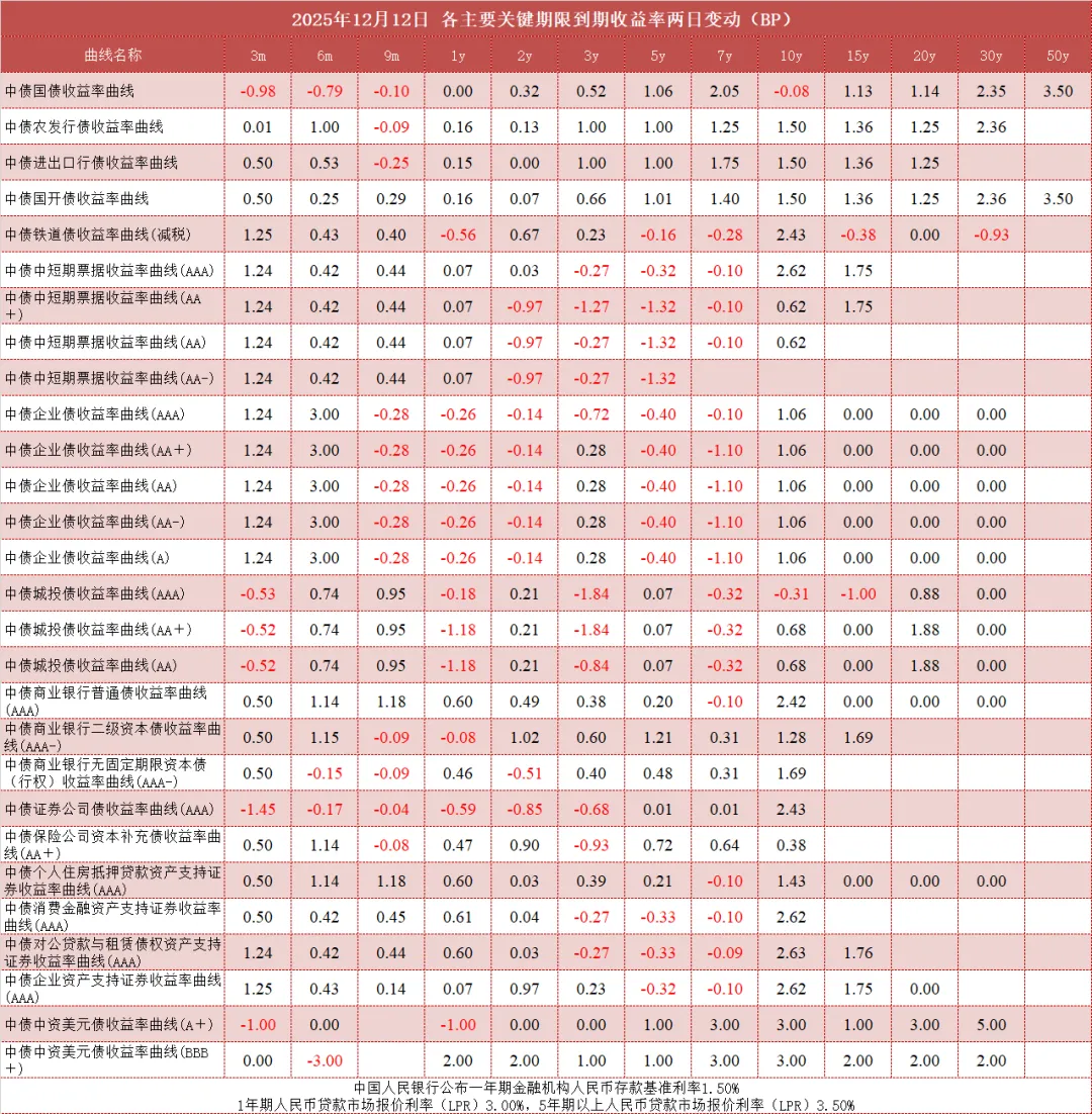 债市值言:中债收益率曲线和指数日评2025年12月12日