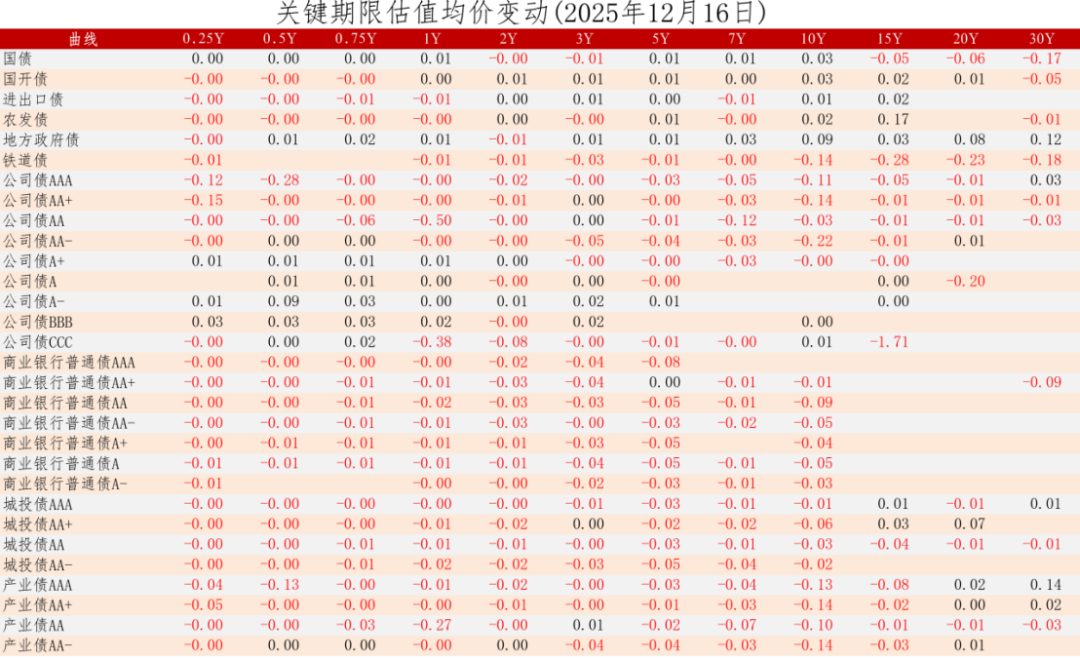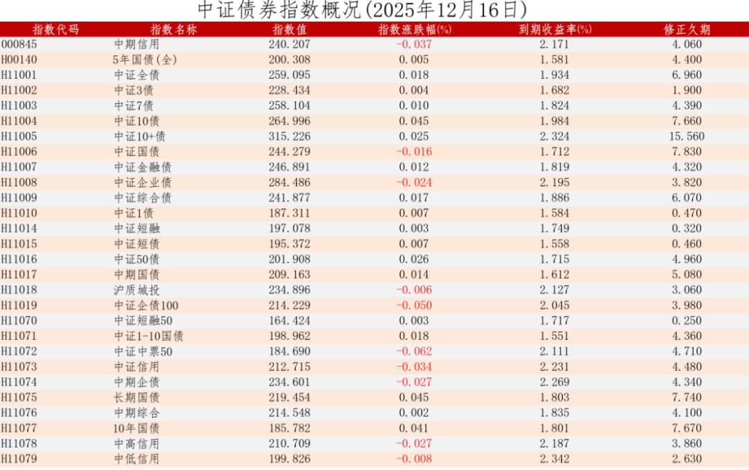 中证债券估值日报2025年12月16日