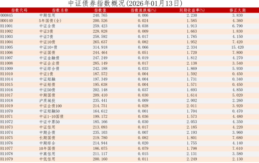 上涨0.0381.9136.79。当日涨幅居前的三条指数是长期国指数、中证10债指数和上涨0.082%、0.082%和0.079%。