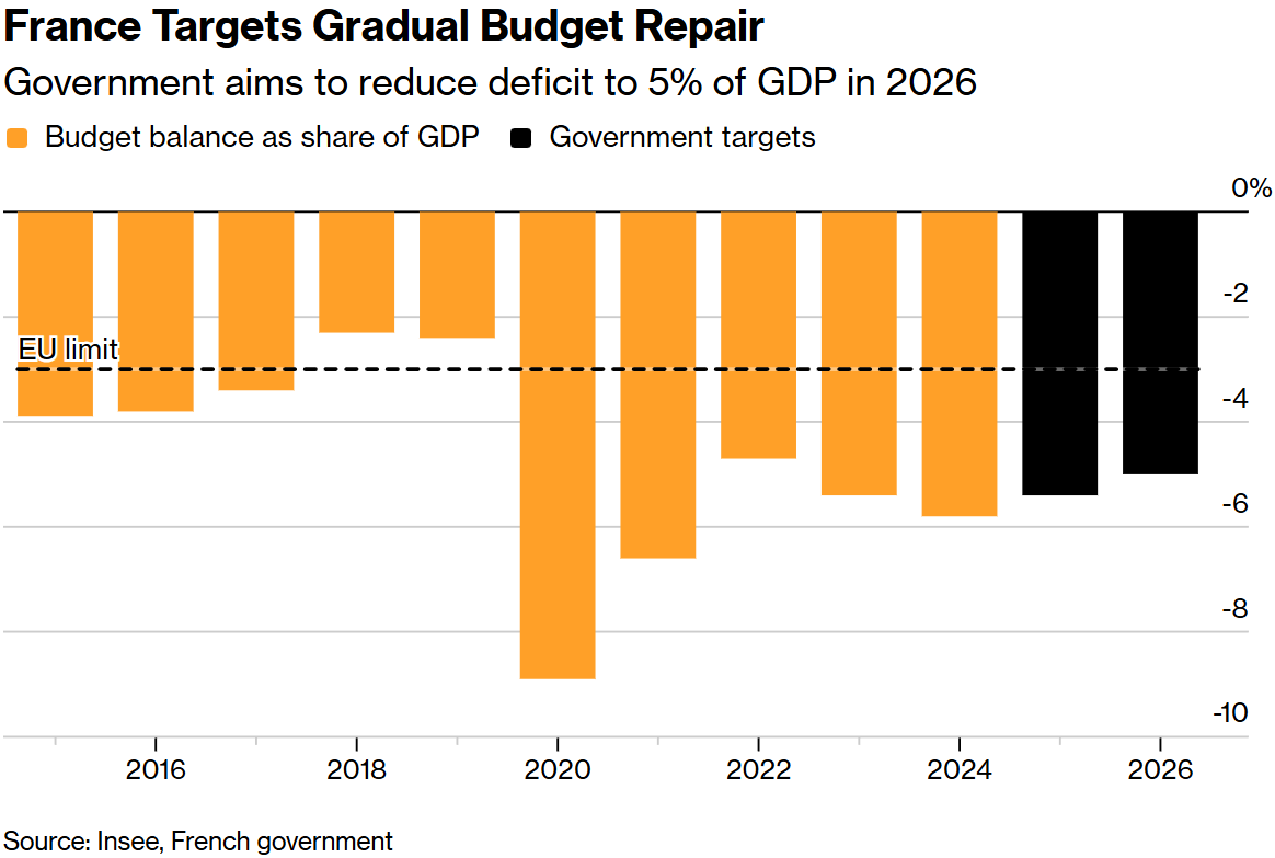 法国政府目标是在2026年将赤字降至GDP的5%