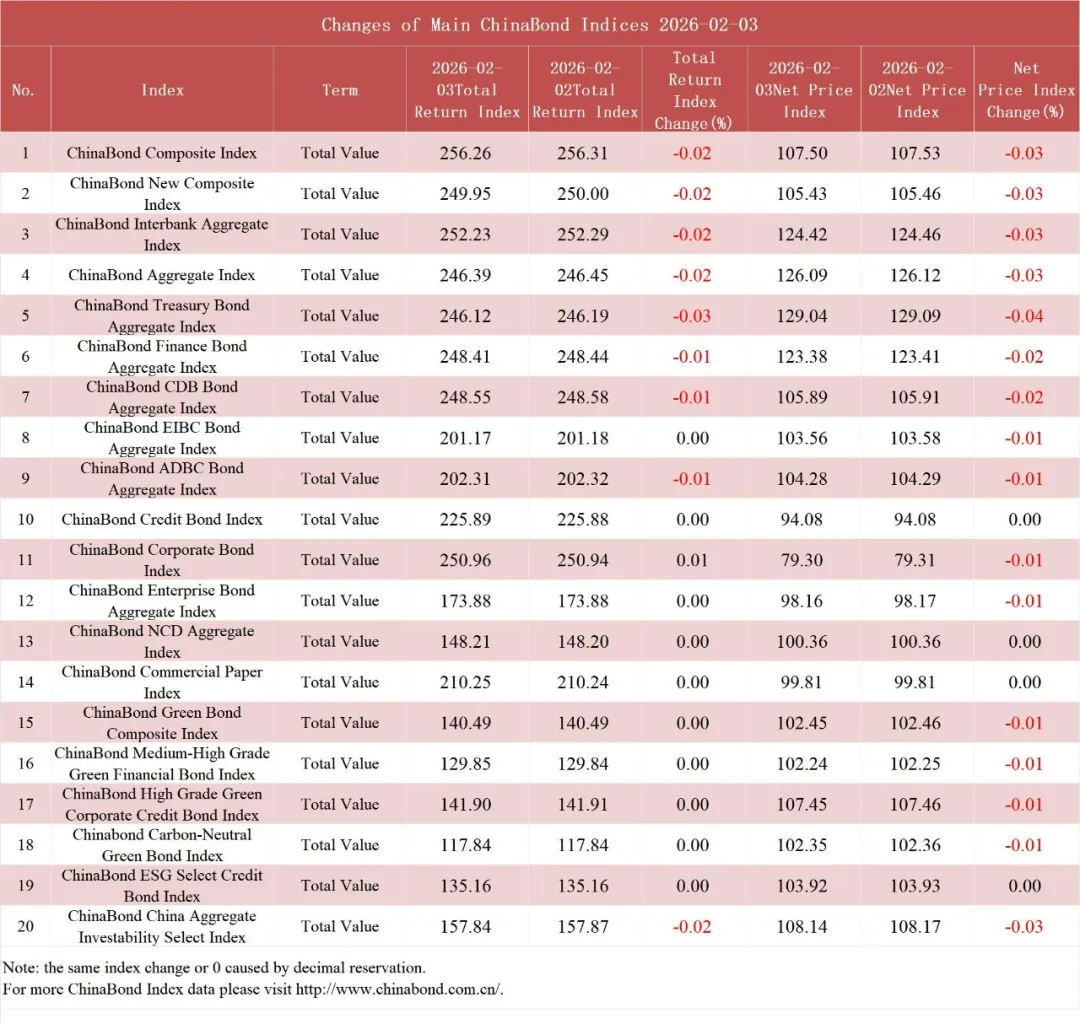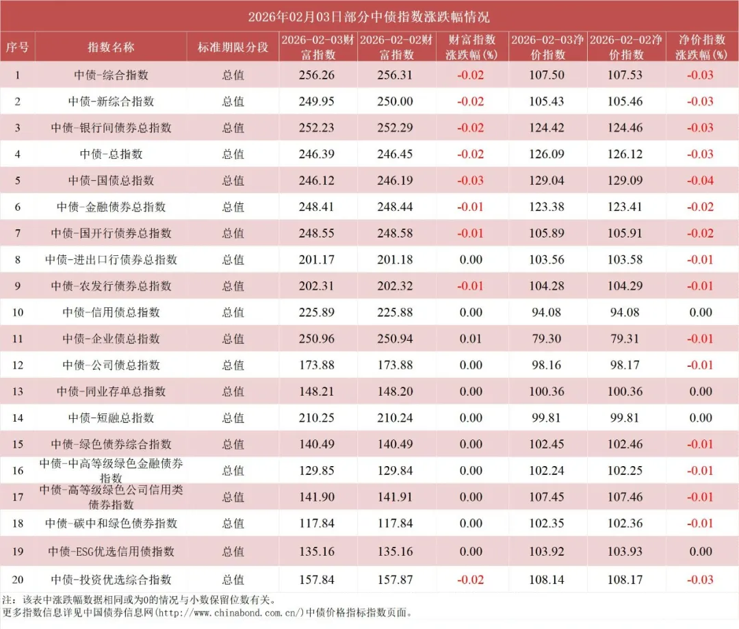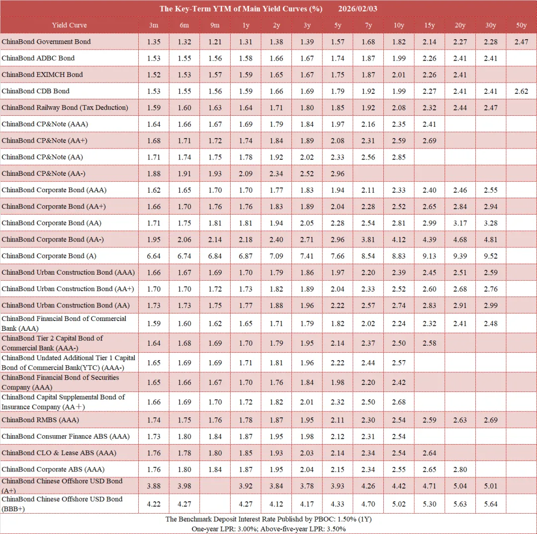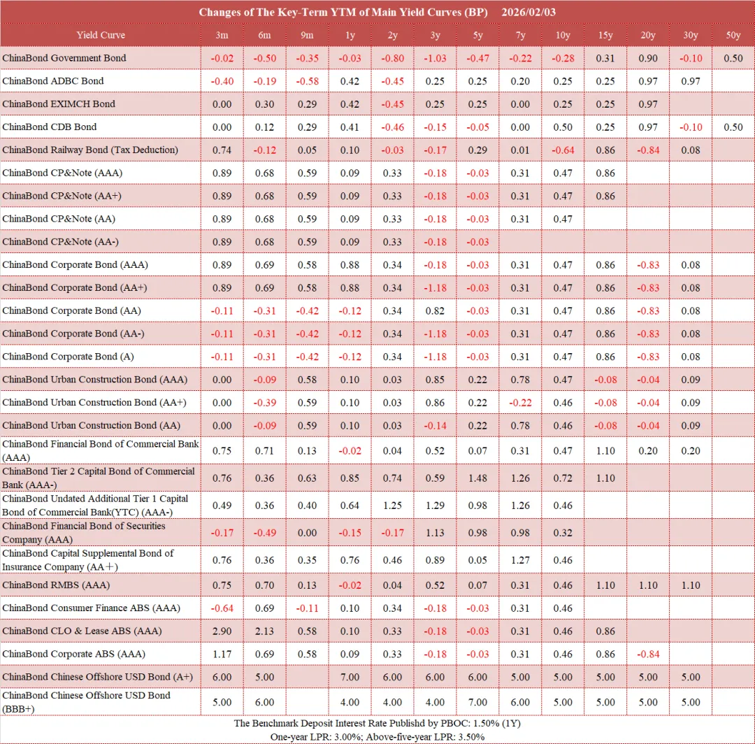 债市值言:中债收益率曲线和指数日评2026年2月3日