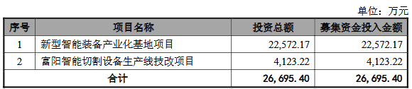 2026年1月27日,爱科科技披露的《向不特定对象发行可转换公司债券证券募集说明书(申报稿)(豁免版)》显示,公司本次拟向不特定对象发行可转换公司债券募集资金总额不超过人民币26,695.40万元(含26,695.40万元),扣除发行费用后,将全部投资于以下项目:新型智能装备产业化基地项目、富阳智能切割设备生产线技改项目。