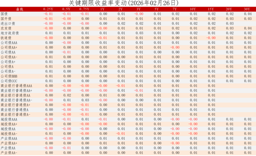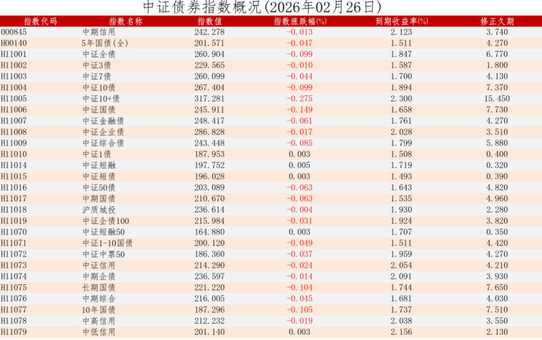 中证债券估值日报2026年02月26日