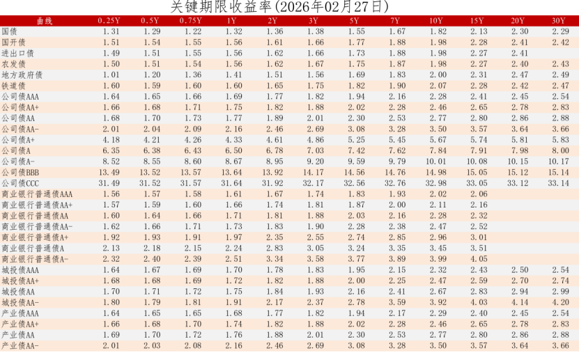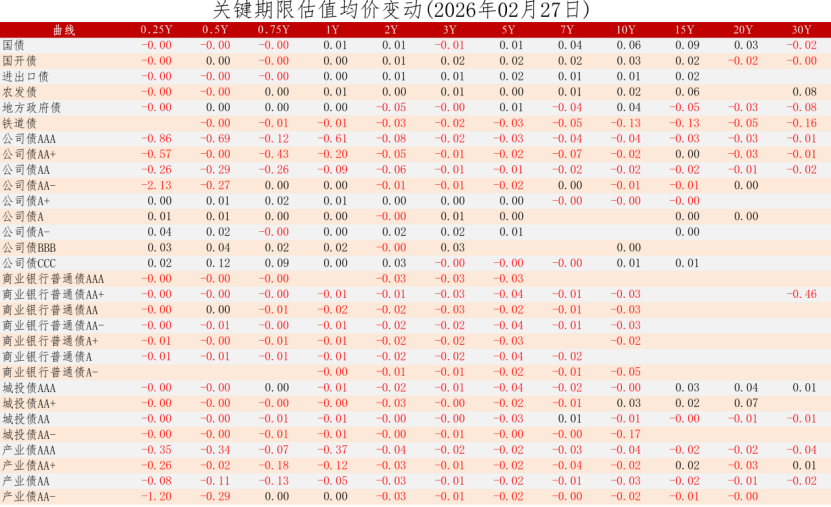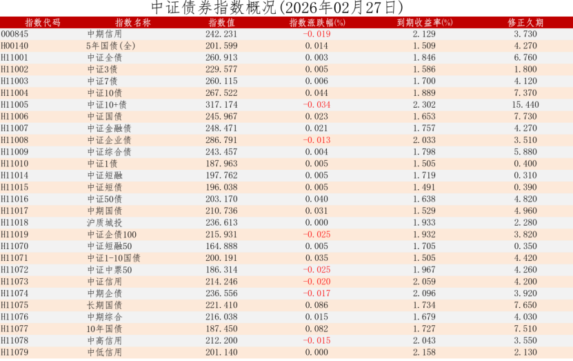 中证债券估值日报2026年02月27日