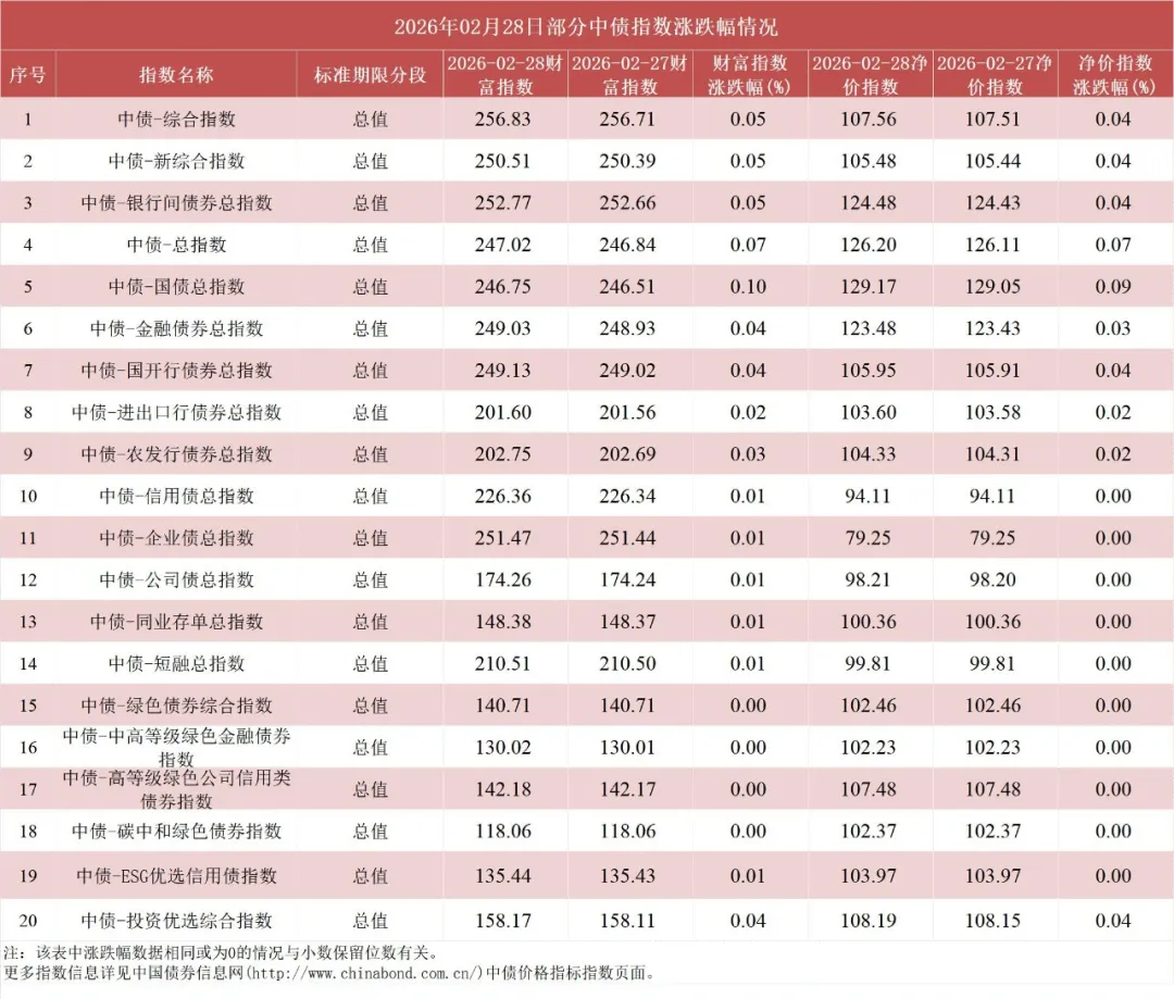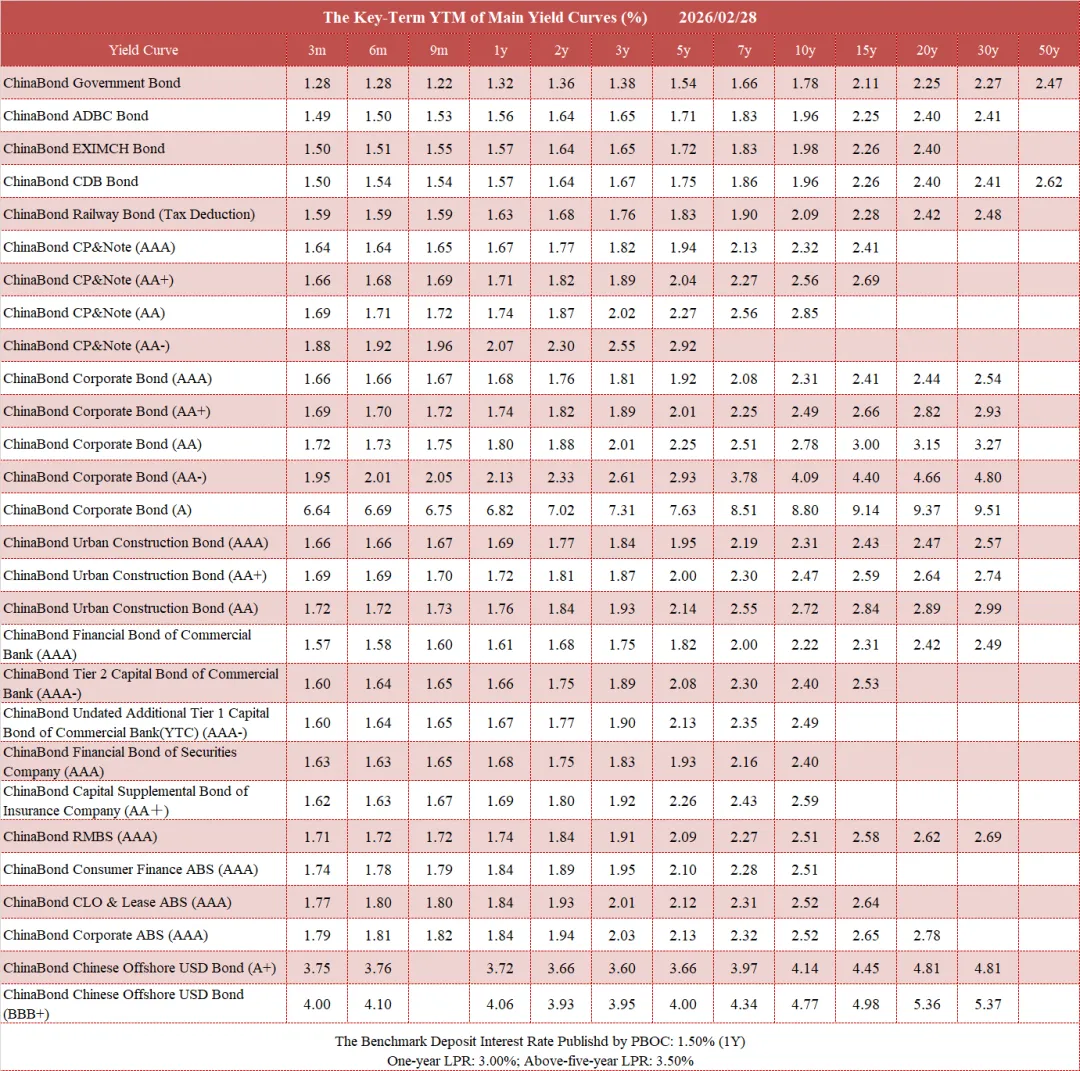 债市值言:中债收益率曲线和指数日评2026年2月28日