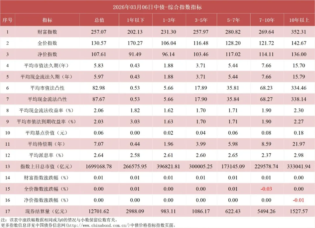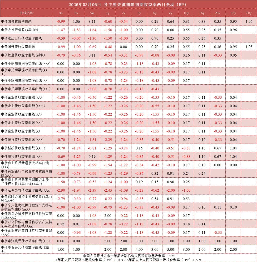 债市值言:中债收益率曲线和指数日评2026年3月6日