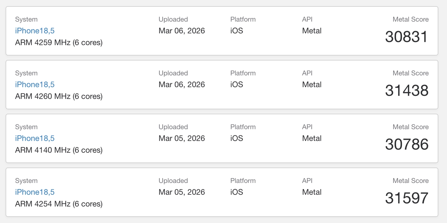 苹果 iPhone 17e 手机 Geekbench 跑分曝光:GPU 性能低于 iPhone 17,CPU 几乎持平