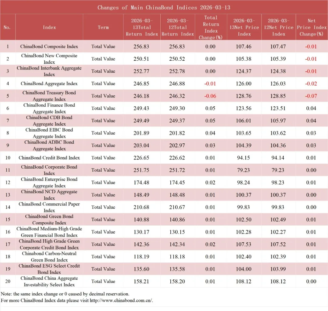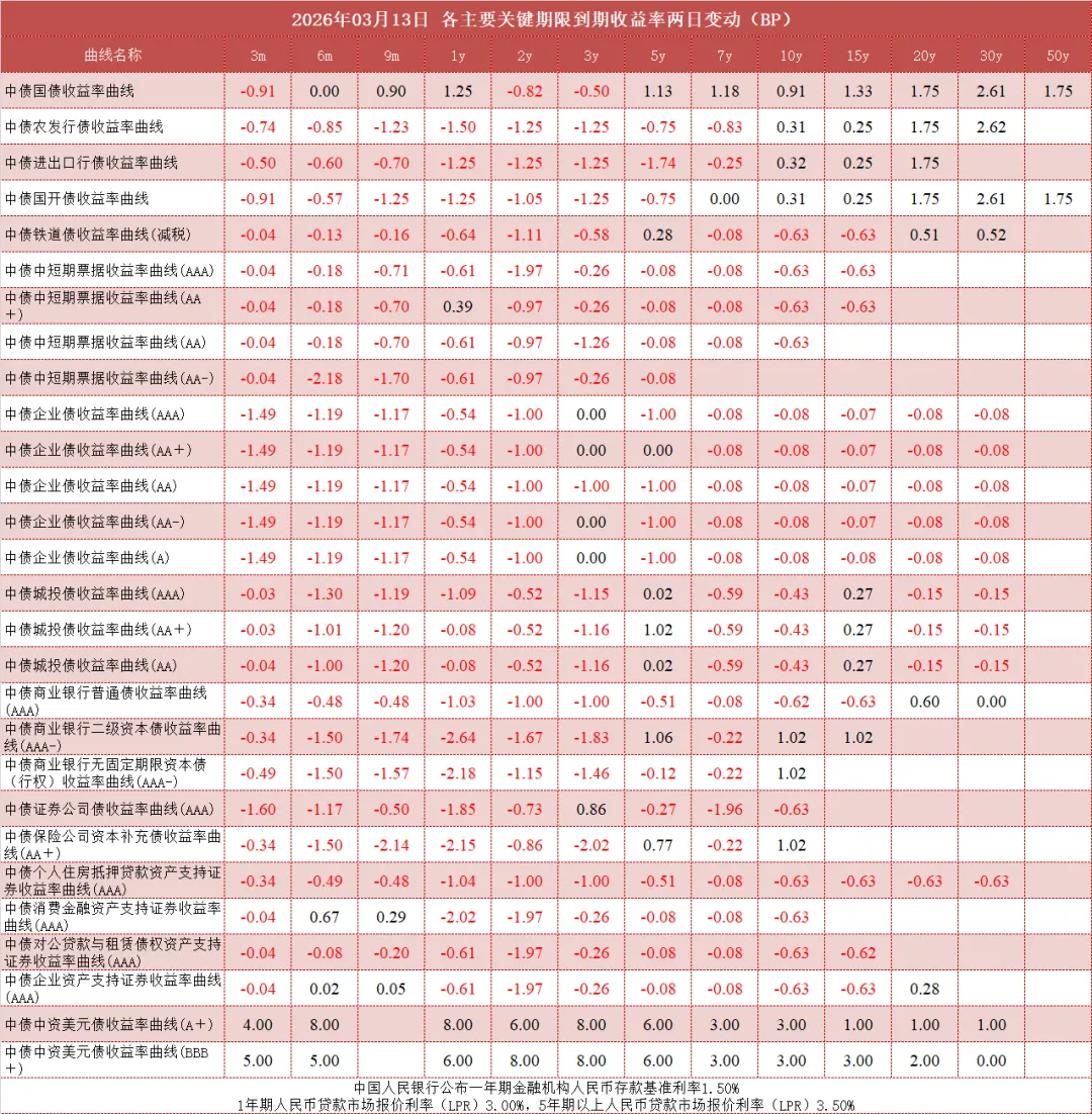 债市值言:中债收益率曲线和指数日评2026年3月13日