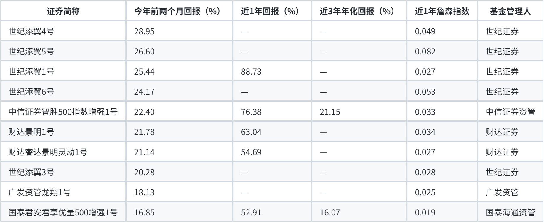 今年前两个月回报居前的主动权益类券商集合理财产品