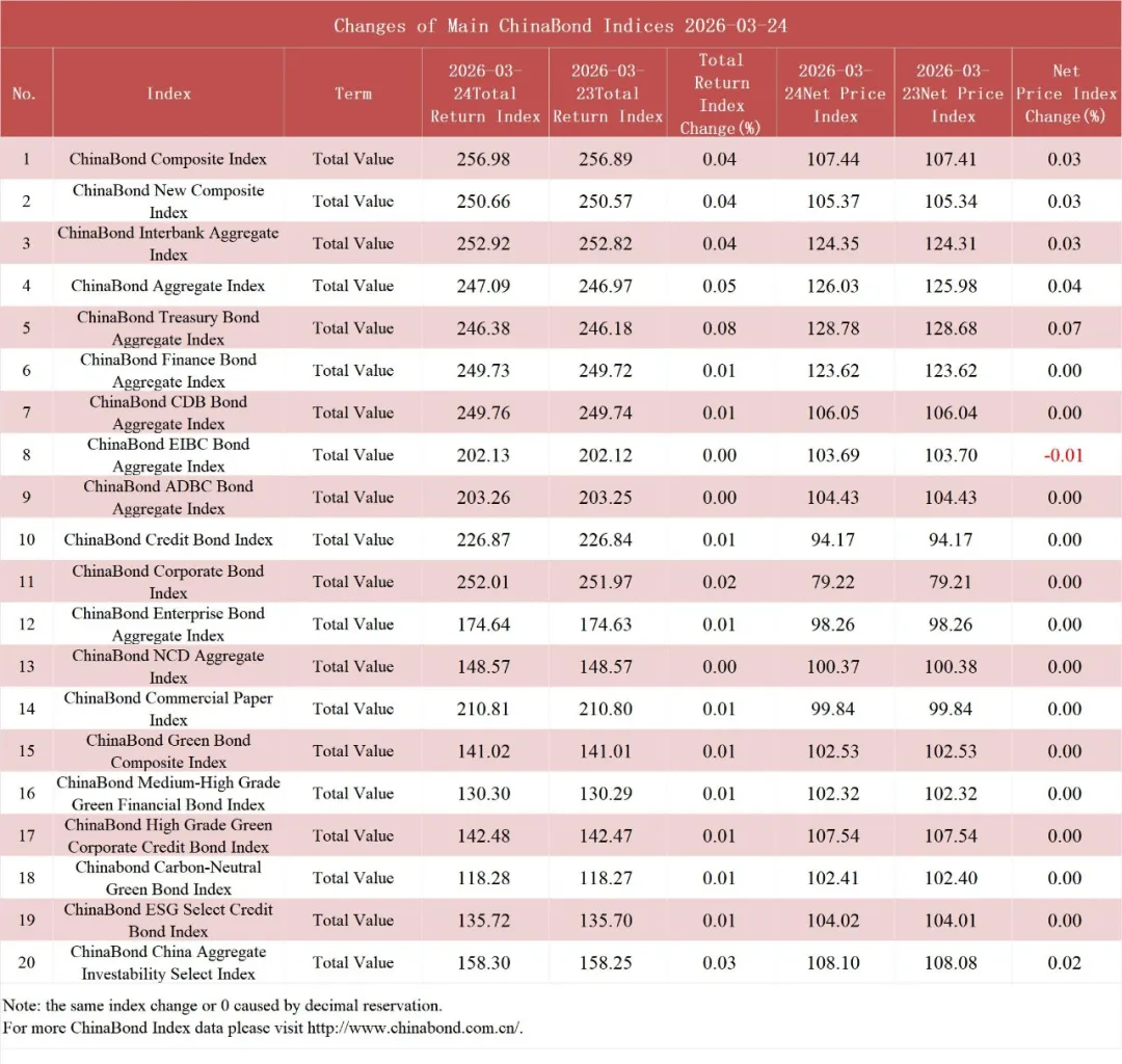 债市值言:中债收益率曲线和指数日评2026年3月24日