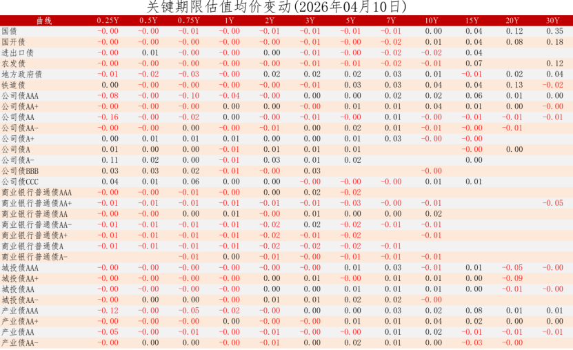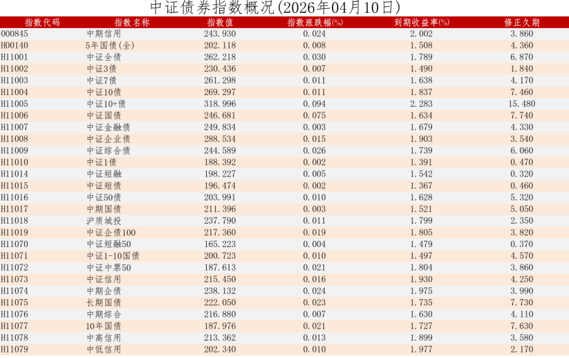 中证债券估值日报2026年04月10日