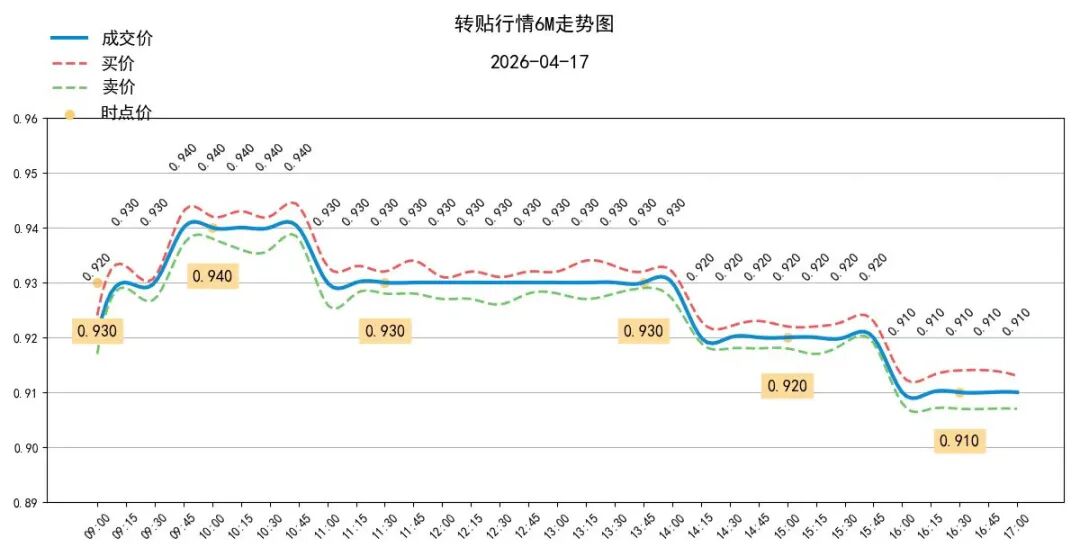 下一交易日国股6M直贴利率维持在0.94%附近;