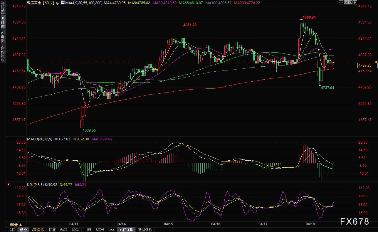 汇通财经APP讯——在全球地缘政治风云变幻之际,现货黄金再度面临显著下行压力。周一(4月20日),现货黄金在亚洲时段一度触及一周低点4,737-4,738美元区域,随后虽出现温和反弹,但整体仍难以摆脱承压态势。目前金价持续徘徊在4,800美元下方,市场情绪谨慎,投资者密切关注美伊冲突最新进展以及美国货币政策信号。