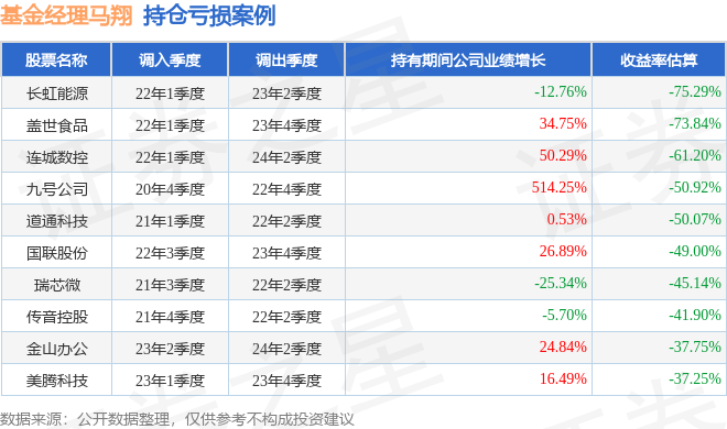 马翔管理的汇添富北交所创新精选两年定开混合A(014279)基金在22年1季度买入长虹能源(850101),在持有1年又1个季度后在23年2季度卖出。持有期间的估算收益率为-75.29%,持有期间长虹能源(850101)在2022年到2023年的年报营业总收入降幅为12.76%。
